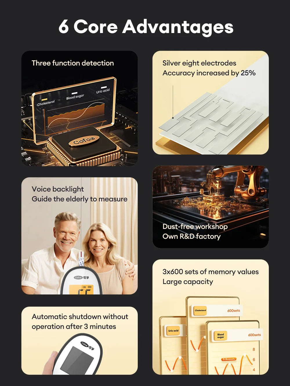 Cofoe Medidor 3 en 1 – Monitor de Glucosa, Ácido Úrico y Colesterol con Precisión Médica