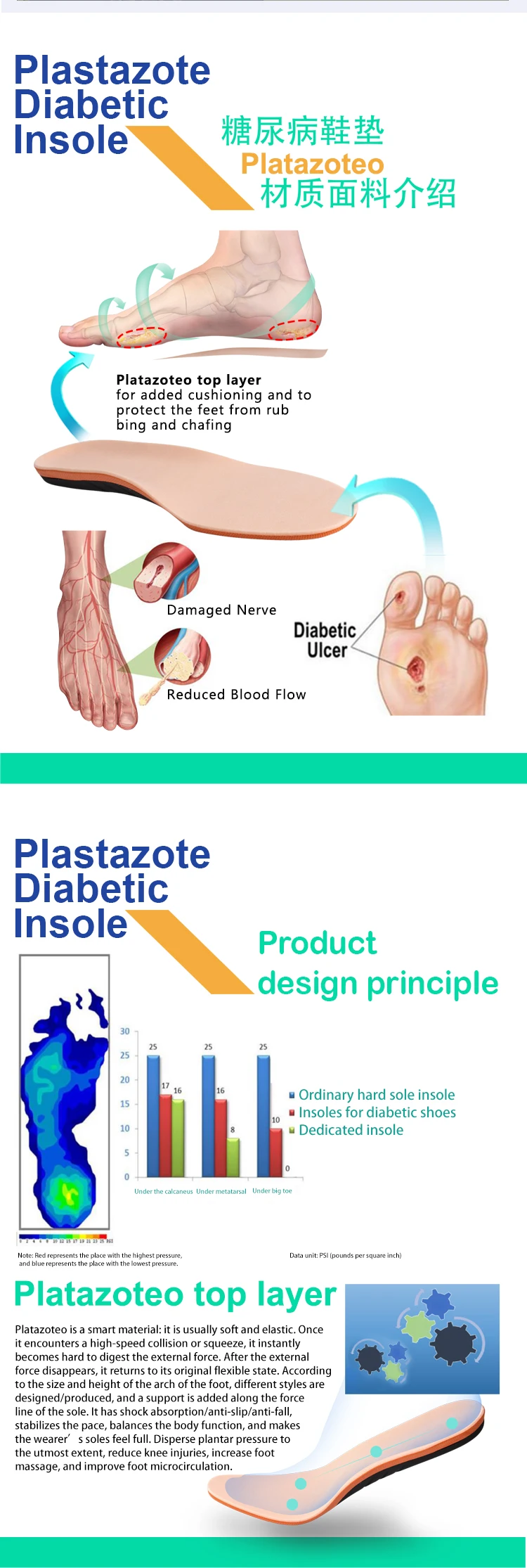 Plantillas diabéticos de silicona – Súper suaves, masaje completo, antidorlor para talón y antepié unisex