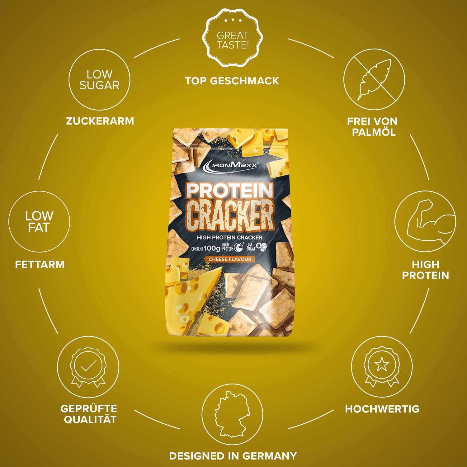 IronMaxx Protein Cracker Pizza 100g | Crunchy, Low Sugar Snack with 21% Protein | Baked & Non-Fried